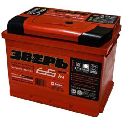 АККУМУЛЯТОРНАЯ БАТАРЕЯ 65 Ач ЗВЕРЬ о/п (640А д*ш*в 24,2*17,5*19 см)