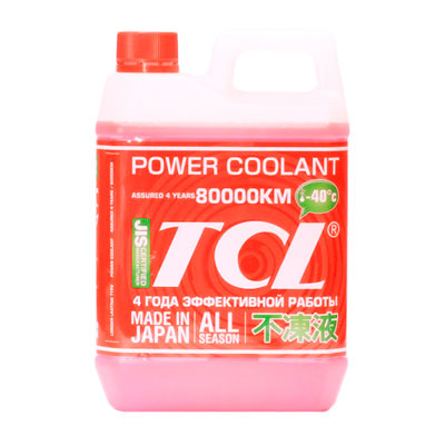 TCL POWER COOLANT -40C - готовая к применению жидкость, которую разводить не надо – она обеспечивает защиту от морозов до минус 40 градусов Цельсия. Цвет красный, рекомендована для автомобилей Toyota. Срок замены составляет 4 года или 80 тысяч километров пробега – в зависимости от того, что наступит раньше.