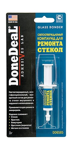 Самоотверждаемый, многофункциональный, прозрачный состав для ремонта стекол внутреннего и наружного использования. Многофункциональный светоотверждаемый компаунд для ремонта стекол. Для того, чтобы произошло отверждение компаунда, одна из соединяемых поверхностей должна быть прозрачна, чтобы свет попал на соединение! Поверхности должны быть чистыми, сухими и очищенными от любых старых адгезивов.