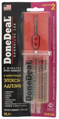 2-х минутный эпокси-адгезив DD6559 (28,4г) — предназначен для склеивания в любых сочетаниях стали, чугуна, сплавов алюминия, цветных металлов, керамики, фарфора, стекла, дерева, картона и большинства пластмасс. После полимеризации безвреден, устойчив к воздействию нефтепродуктов, воды, растворителей. Обладает хорошими эксплуатационными характеристиками, не дает усадки, выдерживает постоянные и переменные нагрузки в интервале от -550С до +1150С. Время схватывания — 1,5 -2 минуты, время полимеризации — 10 минут, время полной полимеризации — 4 часа, прочность соединения — 142кг/см2.Производитель: HI-GEAR – США