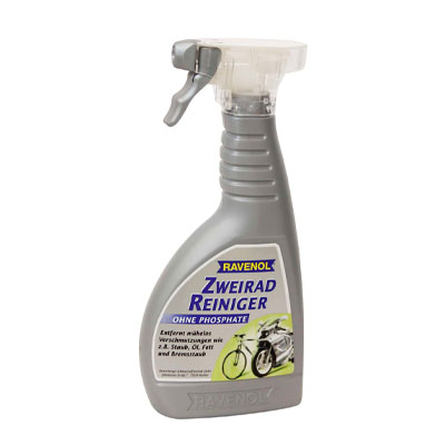 RAVENOL Zweirad-Reiniger - средство для очистки поверхностей двухколесной техники от загрязнений, например, пыли, масла, жира, пыли на дисках, пластмассовых поверхностях. Убирает следы от смазки цепи. Не содержит формальдегиды и фосфаты, до 98 % биоразлагаем.