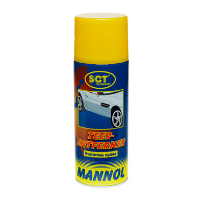 MANNOL TEER-ENTFERNER - эффективное средство для безопасного удаления с лако-красочных и хромированных поверхностей, стекол, бамперов и молдингов автомобилей, различных загрязнений: асфальта, битума, дегтя, масла, следов насекомых, гудрона, дорожного налета, следов почек, птичьего помета, тополиного пуха, старой полироли и т. д. Не применять для пластиковых деталей, не защищенных лакокрасочным покрытием.