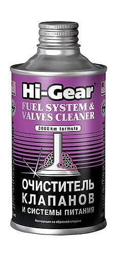 Очиститель системы питания и клапанов. Для впускных клапанов, камеры сгорания, свечей зажигания, элементов системы питания бензиновых двигателей. Мягко очищает всю топливную систему от нерастворимых в бензине смолистых отложений, предотвращает засорение ими топливных фильтров. Удаляет нагар с впускных клапанов, камеры сгорания и днищ поршней. Останавливает коррозию дорогостоящего топливного насоса, деталей системы питания, топливопроводов. Улучшает пуск холодного двигателя. Восстанавливает равномерность оборотов холостого хода. Улучшает динамику автомобиля. Устраняет детонацию («стук пальцев») и калильное зажигание. Снижает расход топлива на 5–7 %.Производитель: HI-GEAR – США