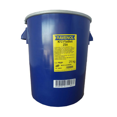 RAVENOL KFZ-Fliessfett ZSA - универсальная смазка на основе синтетического базового масла с использованием в качестве загустителя литиевое мыло и противозадирных присадок для применения в централизованной системе смазки. Используется для смазывания централизованных систем Willy Vogel, Mercedes-Benz и MAN.