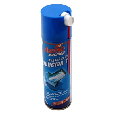 Смазка проникающая АВТОМАСТЕР Унисма-1 210мл аэрозоль - отечественный аналог известного средства WD-40. Средство облегчает отвинчивание заржавевших резьбовых соединений. Способствует удалению ржавчины. Останавливает и предотвращает процесс коррозии. Облегчает запуск отсыревших двигателей (вытесняя влагу, устраняет утечку тока в системе зажигания). Защищает детали электрооборудования от окисления. Смазывает трущиеся поверхности. Очищает резиновые и пластмассовые детали.
