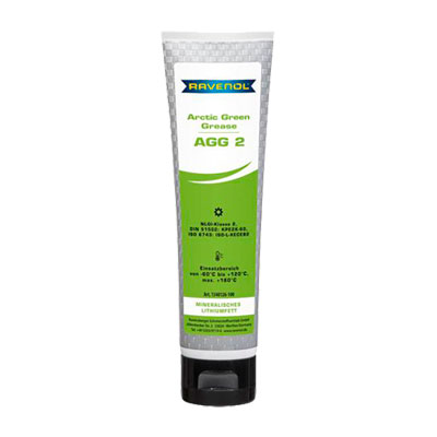 RAVENOL Arctic Green Grease AGG2 - специально разработанная смазка на основе синтетических компонентов (эстеров), с добавлением минерального масла, загуститель – литиевое мыло. Применяется для смазывания подшипников качения и скольжения при экстремально высоких нагрузках и очень низких температурах.