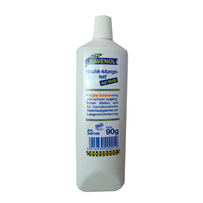 RAVENOL Hochleistungsfett mit MOS-2 - пластичная смазка на основе минерального базового масла, комплекса антиокислительных и противоизносных присадок, ингибиторов коррозии. В качестве загустителя используется литиевое мыло.