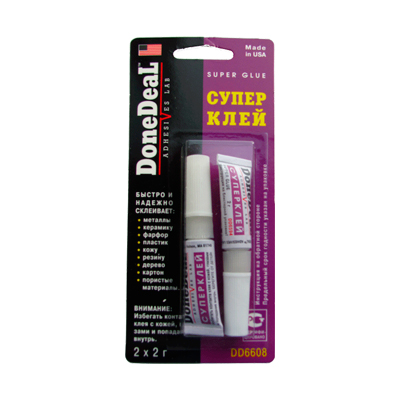DONE DEAL DD6608 - Супер клей 2x2. Универсальный цианакрилатный клей (суперклей) для склеивания различных материалов, обладающий высокими тиксотропными свойствами (не стекает с вертикальных поверхностей). Универсальный суперклей, предназначенный для быстрого и надежного склеивания различных материалов. Обладает высокой прочностью.