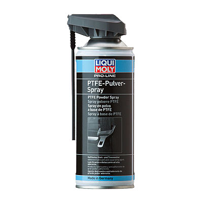 LIQUI MOLY Pro-Line PTFE-Pulver-Spray - тефлоновый спрей для смазывания подвижных частей, таких как сочленения, направляющие, механизмы (закрытые и открытые) и т.п., а также как разделительное средство или для устранения скрипов при контакте любых материалов. Особо рекомендуется в случаях, когда нежелательно использование жиров или силиконов.