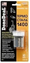 Термосталь- термостойкий (до 1400 °С) сверхпрочный ремонтный герметик DONE DEAL TERMOSTEEL 1400. Предназначен для ремонта стальных или чугунных изделий, работающих при температуре до +1400°С: выпускных коллекторов, головок блока цилиндров, глушителей, каталитических нейтрализаторов, а также водонагревателей, чугунных и стальных печей, труб и т.п. Образует соединение с диффузией в сталь или чугун. Схватывается за 3-4 часа, отвердевает и полностью полимеризуется после нагрева до рабочей температуры. Выдерживает перепады температуры, вибрацию и ударные нагрузки.Производитель: HI-GEAR – США