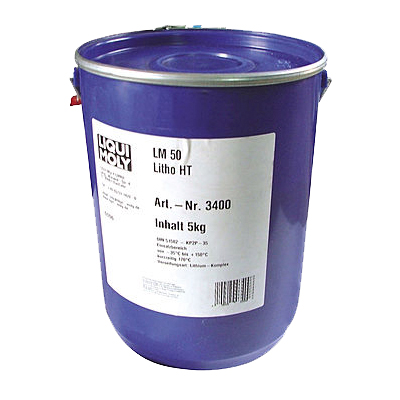 Liqui Moly LM 50 Litho HT - Высокотемпературная смазка для ступиц подшипников. Темно-синяя высокотемпературная консистентная смазка второго класса NLGI для первичной и регулярной смазки высоконагруженных теплонапряженных деталей автомобилей и сельскохозяйственных машин: ступичных подшипников, нагруженных шарниров и в качестве универсальной смазки. Хорошо воспринимает ударные нагрузки. Стойка к воздействию воды. Температурный диапазон использования от -30°С до +160°С.