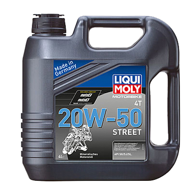 Liqui Moly Racing 4T Street 20W-50 - Минеральное моторное масло для 4-тактных мотоциклов. Для эксплуатации шоссейной мототехники на дорогах с твердым покрытием. Универсального применения, преимущественно для низкооборотных мотодвигателей с воздушным охлаждением. Для классических и коллекционных ретро-мотоциклов.