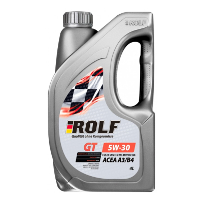 ROLF GT 5W-30 - синтетическое легкотекучее моторное масло высокого класса в бензиновых и дизельных двигателях, в том числе с турбонаддувом. Для всесезонного применения.
