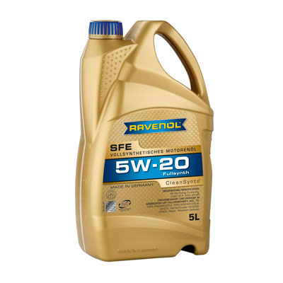 RAVENOL Super Fuel Economy SFE SAE 5W-20 - полностью синтетическое легкотекучее моторное масло, изготовленное с применением технологии CleanSynto® для легковых бензиновых и дизельных двигателей с и без турбонадува и прямым впрыском топлива.