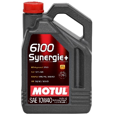 MOTUL 6100 Synergie+ 10W-40 - моторное масло специально разработанное для новых мощных автомобилей, с большой литровой мощностью. Турбо-дизельные двигатели с непосредственным впрыском, бензиновые двигатели с инжектором и каталитическим конвертором. Совместимо со всеми типами топлива: бензин (этилированный/неэтилированный), дизельное топливо, газ.