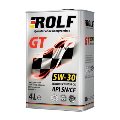 ROLF GT 5W-30 - синтетическое легкотекучее моторное масло высокого класса в бензиновых и дизельных двигателях, в том числе с турбонаддувом. Для всесезонного применения.